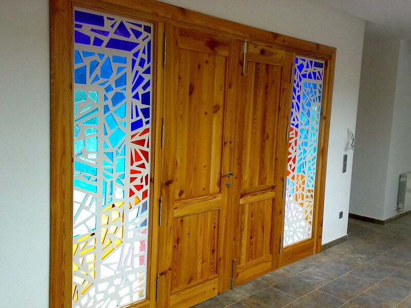- Cristales con vinilo decorativo: opción versátil y económica. Se puede cambiar fácilmente y permite diseños muy variados.